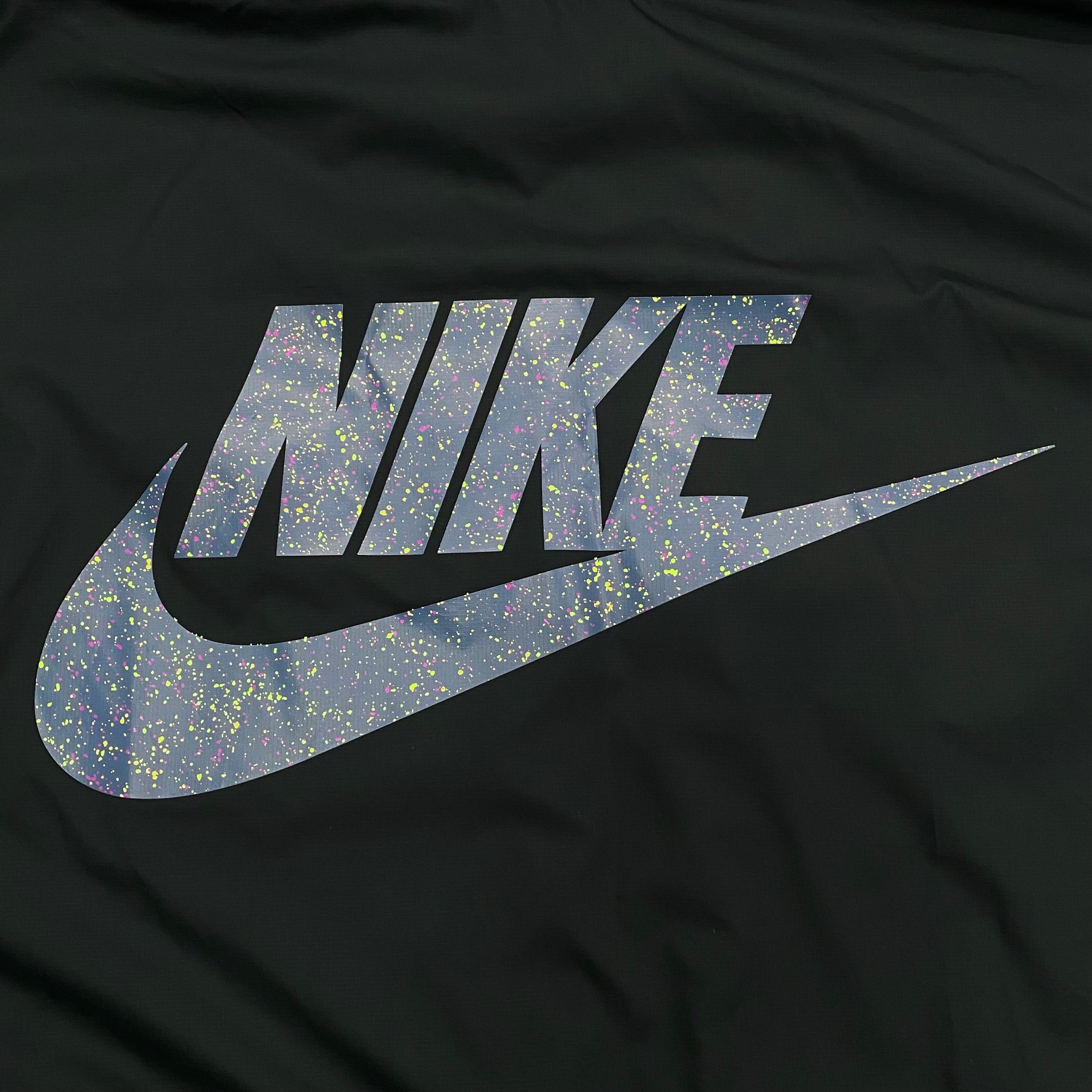The jacket boasts a convenient half-zip closure, a hood for those sudden gusts of wind, and a packable design for on-the-go convenience. It's lightweight yet lined, ensuring warmth without the bulk. Equipped with pockets, it's easy to keep essentials close. Whether you're cross-training, jogging, or simply enjoying a leisurely walk, this jacket's vibrant blend of fluorescent accents and iconic Nike logos makes it a standout piece for any active occasion.